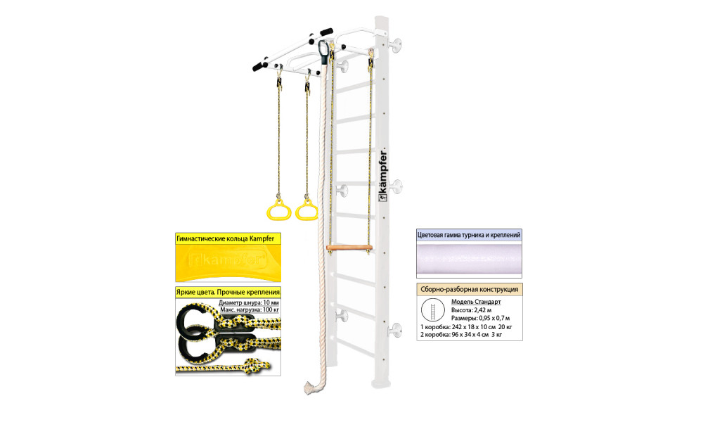 Шведская стенка Kampfer Helena Wall (№6 Жемчужный Стандарт белый турник)